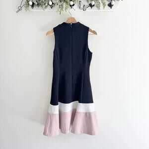 ELIZA J Colorblock Quilted Fit & Flare Dress In Navy Size 6 K51
