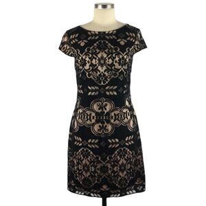 ELIZA J Dress Black Tan Velvet Burnout Lace Cutout Mini Dress Size 6 Date Night