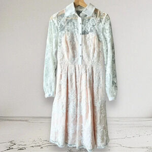 🌺FEATURE : All over lace / Button closure on tops / Side Hidden zip closure / Side two pockets / Satin collared / Pearl button / Slip with light tutu inside