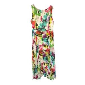 ELIZA J Floral Print Watercolor Plisse Pleated Maxi Plus 24W Fairy Whimsical