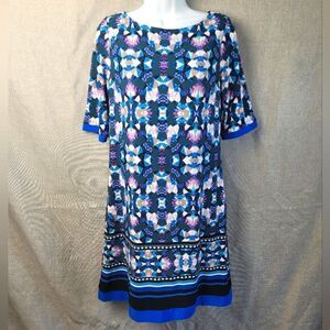 Stunning sheath dress from Eliza J in a geometric pattern, with half sleeves. Size 10