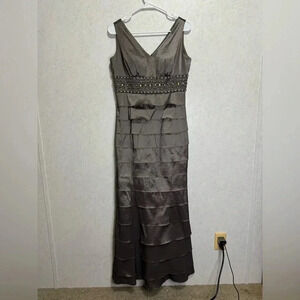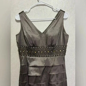 ELIZA J Gray 2 Piece Beaded Multi-Tiered Gown Dress Mother of Bride Womens Sz 8