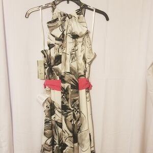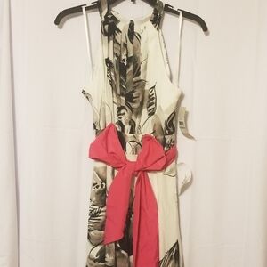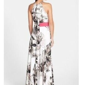 ELIZA J. Halter Maxi Ivory Black Multi With Pink Color Sash