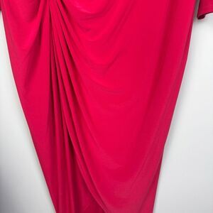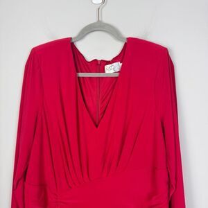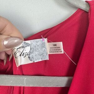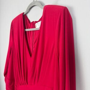 This elegant red dress by Eliza J is perfect for any occasion. Its vibrant color and stylish design make it a must-have in your wardrobe. V-neck. Long sleeves. Long length with ruched detail on one side and sash style waistline. Midi or maxi depending on your height. Brand NWT - does have some sticker residue on the tag as shown. Women’s plus size 18W.