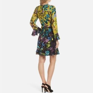 ELIZA J NWOT Floral Color Block MIDI Dress with Bell Sleeves Size 4 Romantic