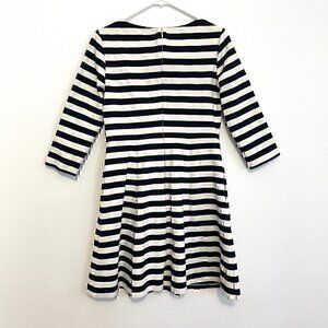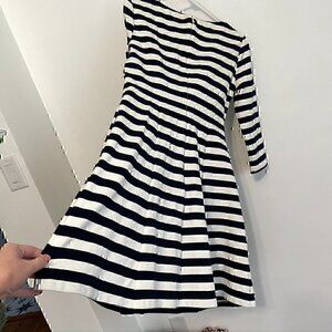 - navy blue / white horizontal striped square neck 3/4 sleeve fit & flare dress