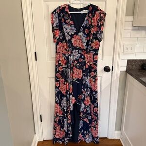 ELIZA J Obi Floral Print High/Low Dress Navy Floral 45360