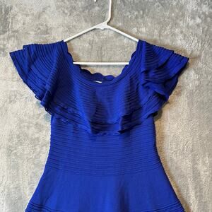 ELIZA J Off The Shoulder Fit & Flare Dress Size Small Blue