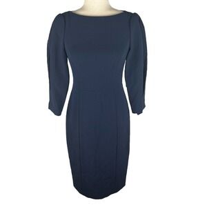 ELIZA J PLEATED 3/4 SLEEVE SHEATH DRESS IN NAVY NWT WOMEN'S SIZE 2