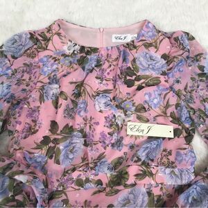 ELIZA J Pink Floral Long Sleeve Maxi Dress Chiffon Ruffle Front Slit Size 14 New