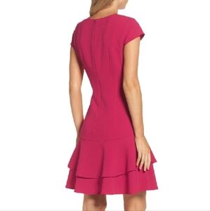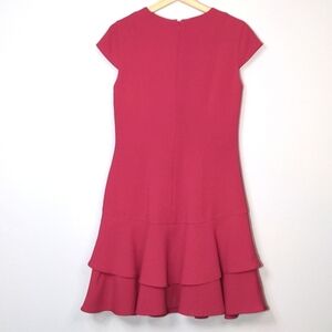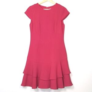 ELIZA J Stretch Ruffle Crepe Sheath Drop Waist Short Sleeve Dress Berry Pink Size 6