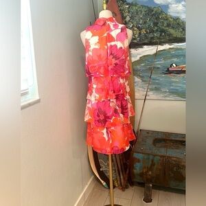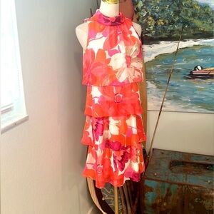 ELIZA J, Stunning,Vibrant,High-NeckTiered Dress, Halter-Style, EUC, Size 4