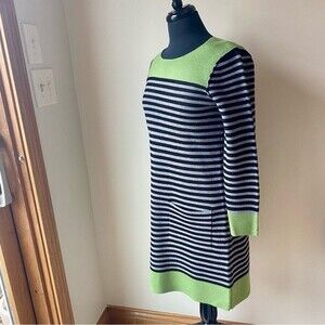 ELIZA J Sweater Dress Stripe Green Black Gray Knit Pockets Midi Length