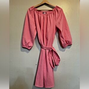 ELIZABETH AND JAMES Casual Pink Light-Weight Quarter Sleeve Belted Shift Dress