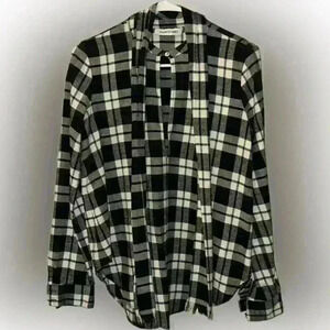 ELIZABETH AND JAMES Large Black & White Plaid Flannel Long-Sleeved Blouse