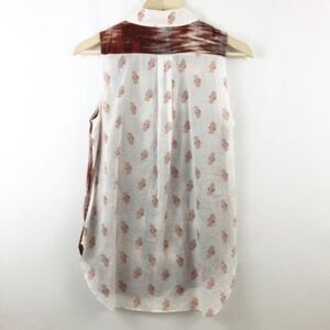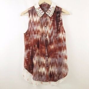 Elizabeth and James Brown Lavender White Sleeveless Silk Jewel Collar Button-down Top