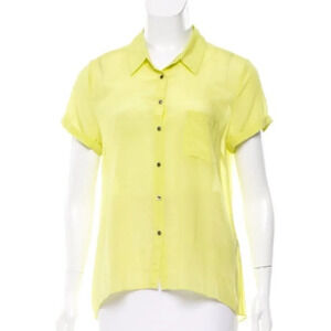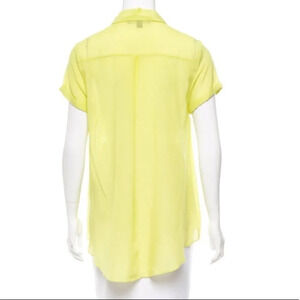 Yellow Elizabeth and James soft silk-cotton blend short sleeve top with single patch pocket at left bust, high-low hem and button closures at center front.