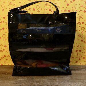ELIZABETH ARDEN Black Faux Patent Leather & Mesh Tote 14" x 15" x 5"