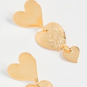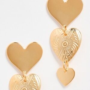 Brand New in Bag, ELIZABETH COLE "CIEL" Gold Plated Heart Drop Earrings.