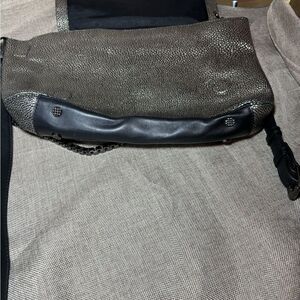 ELIZABETH & JAMES Silver Metallic Pebbled Leather Flap Over Clutch Handbag