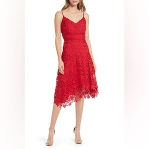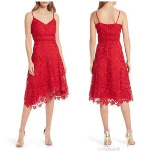 ELIZA J Elegant Red Lace Spaghetti Strap Cocktail Dress Party Size 4 6 8 New