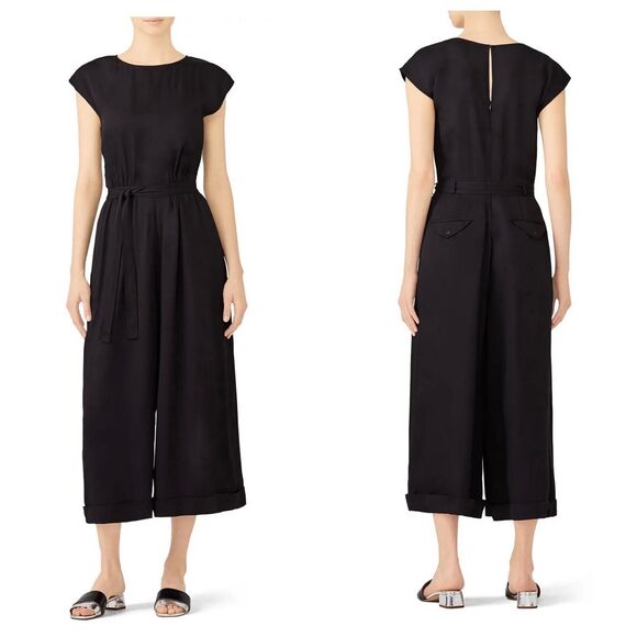 ELK Black Midi Wide Leg Cool Viscose Lightweight Draped Jumpsuit US Sz 6/ EU 38