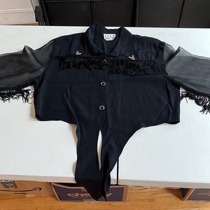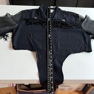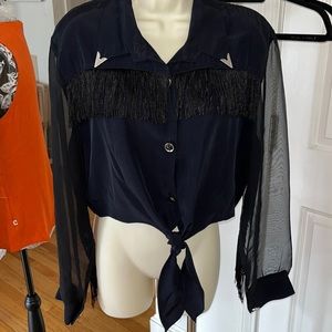 ELLA FASHION black XL vintage Fringe button down shirt with sheer sleeves
