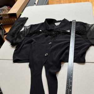 VINTAGE ELLA FASHION 1980’s XL BLACK FRINGE button down blouse