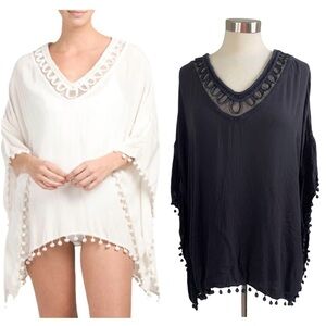 This beautiful black pom pom beach swim cover-up from Ella Moss makes the perfect spring and summer closet staple! Preowned with a few missing pom poms (please see picture), but overall in great condition!
