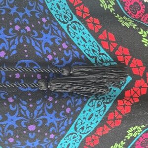 ELLA MOSS Black V Neck Tassel Cord Tunic Size Large Bright Mandala Print Boho
