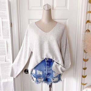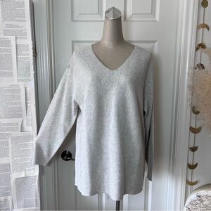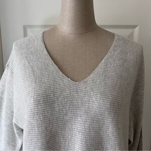 - ELLA MOSS Grey V Neck Pullover Ribbed Sweater