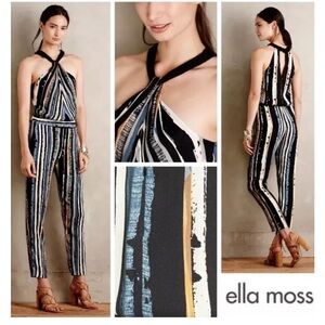 ELLA MOSS Rainforest Jumpsuit Stripe Print Halter Drop Waist Size Small
