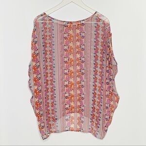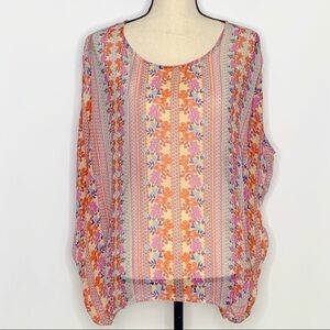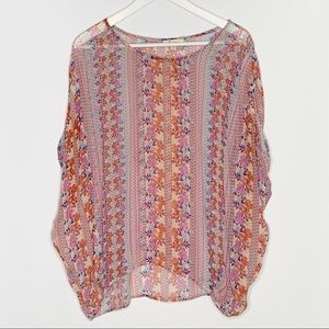 ELLA Moss Silk Top floral multicolor sheer loose fit poncho medium