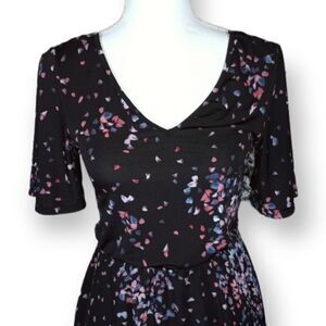 ELLE ASYMMETRICAL BLACK & PURPLE V-NECK DRESS SZ.XS EUC. GORGEOUS DRESS IN EXCELLENT USED CONDITION LIKE NEW.