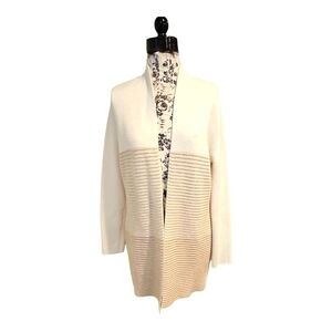 ELLE Beige Tan Cream Open Front Long Color block Cardigan Sweater sz S