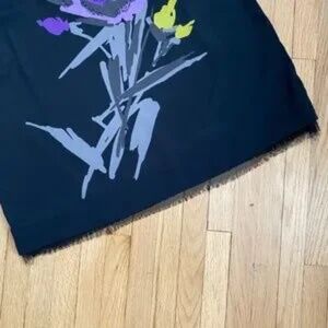 Add a bold and artistic touch to your wardrobe with this ELLE black sleeveless dress featuring a striking floral graphic in purple, yellow, and gray tones. The subtle embellishment adds a touch of sparkle, while the tulle/Fringed hem peeking out below gives it playful, unexpected flair. Whether styled casually or dressed up with heels, this piece makes a confident statement.