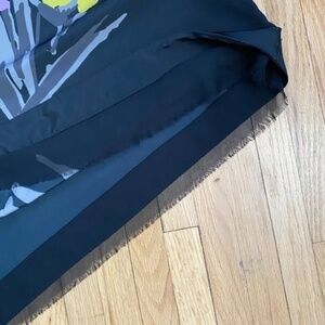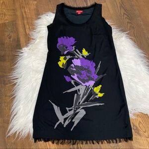ELLE Black Sleeveless Floral Gemstone Graphic Dress with Fringed Hem Size XS