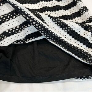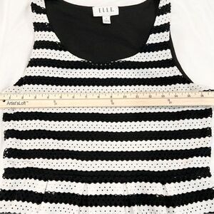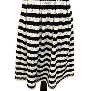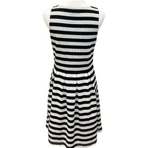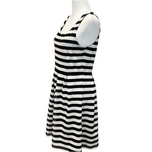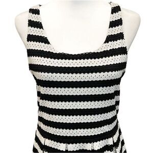 ELLE Black White Eyelet Fit & Flare Mini Dress Striped Sleeveless Stretchy 10