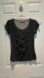 ELLE Black & White Polka Dot Short Sleeve Top Size XS Ruffle Scoopneck Casual