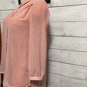 Beautiful dressy blouse pale pink, Button Through Sheer Mesh Blouse # 109
