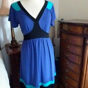 ELLE Color Block Belted Boho Empire Waist A-line Dress, size M