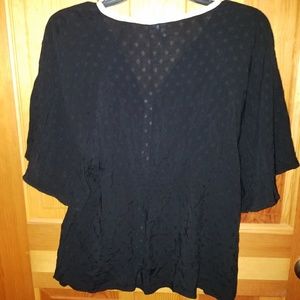 Black with white trim flutter sleeve top by ELLE (KOHLS).100%rayon.Lightweight for spring/summer.Size small.New with tags