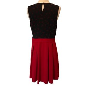 ELLE Dress Eiffel Tower Paris Pleated Ponte Knit Sleeveless Black Red Size 10