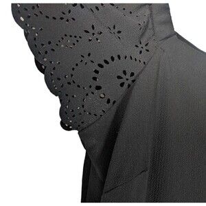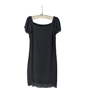 ELLE Dress S Women's Black Scalloped Short Sleeve Off-Shoulder Laser Cut Shift