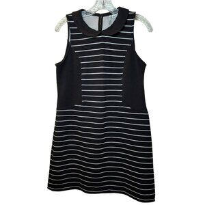 ELLE Dress Small Black White Striped Sleeveless Peter Pan Collar 32" Preowned