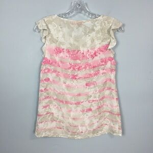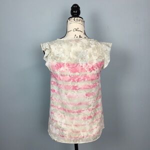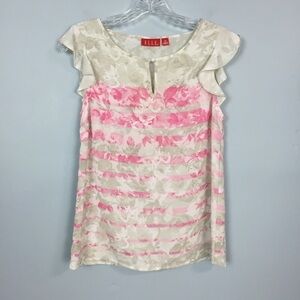 ELLE Flutter Cap Sleeves Striped Floral Blouse