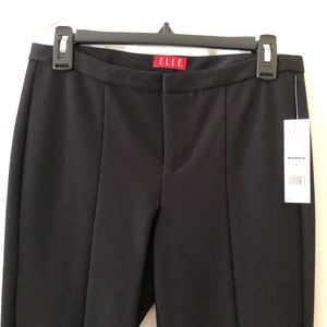 ELLE “In The Mix” Black Tie Seamed Dress Pant, Size 6, New with tags. These pants have a fixed waistband with a zip and hook front. The fabric consists of 66% rayon, 29% nylon, and 5% spandex. They are machine washable. The fabric is heavier for the colder months. The inseam measures approximately 28” and the waist 30”. There are sewn seams down the front and back legs and there is a 1-1/2” slit on the outside of each leg at the ankle.