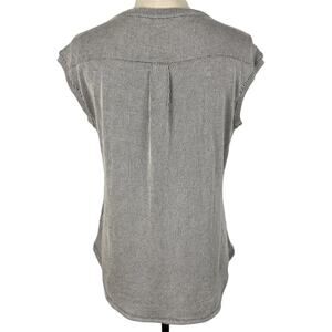 ELLE Sequin Blouse Short Sleeve Black Striped Scoopneck Top Womens XS