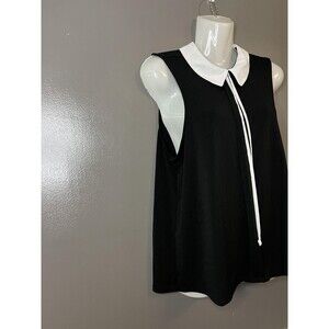 ELLE Shirt Womens Small Black White Peter Pan Collar Tie Neck Sleeveless Top