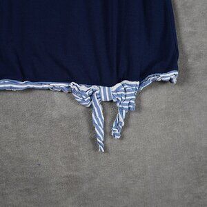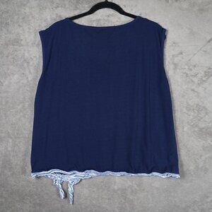 ELLE Sleeveless Blouse Womens XL Boxy Navy Striped Bow Contrast Hem Coastal